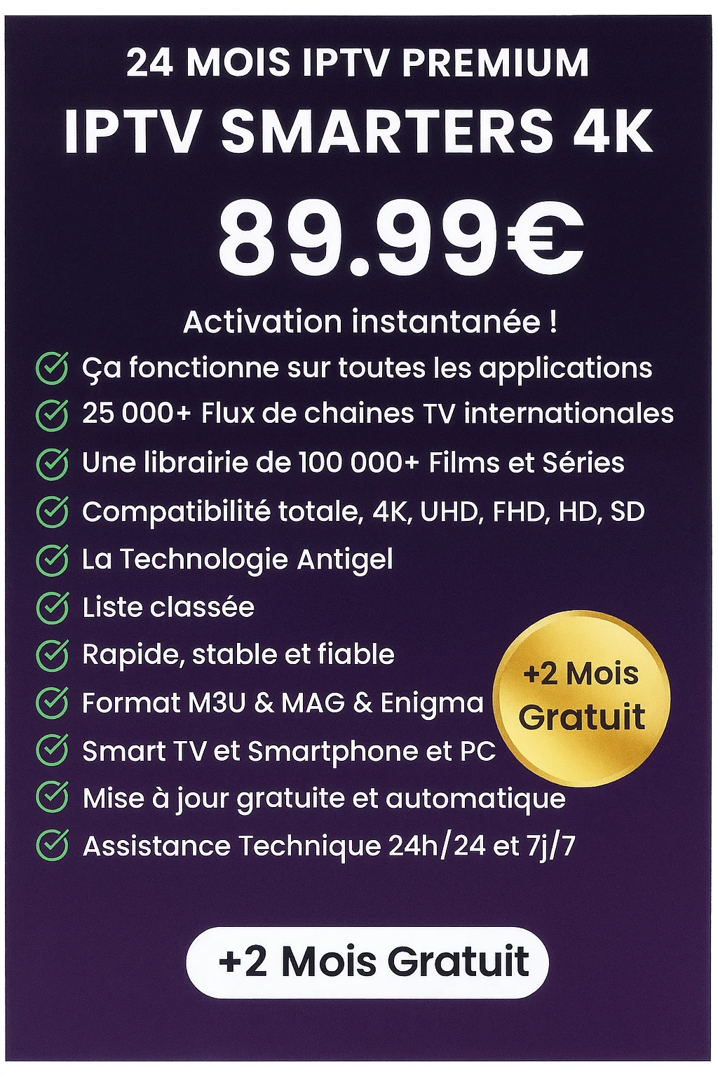 👉 Commandez maintenant votre abonnement IPTV PREMIUM 24 MOIS + 2 MOIS GRATUITS pour seulement 89,99 € !